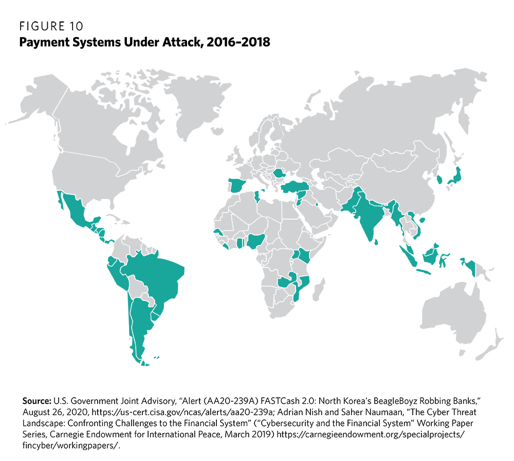 27 U.S. Department of Homeland Security, “Joint Advisory—Alert (AA20-239A) FASTCash 2.0: North Korea's BeagleBoyz Robbing Banks,” August 26, 2020, https://us-cert.cisa.gov/ncas/alerts/aa20-239a.